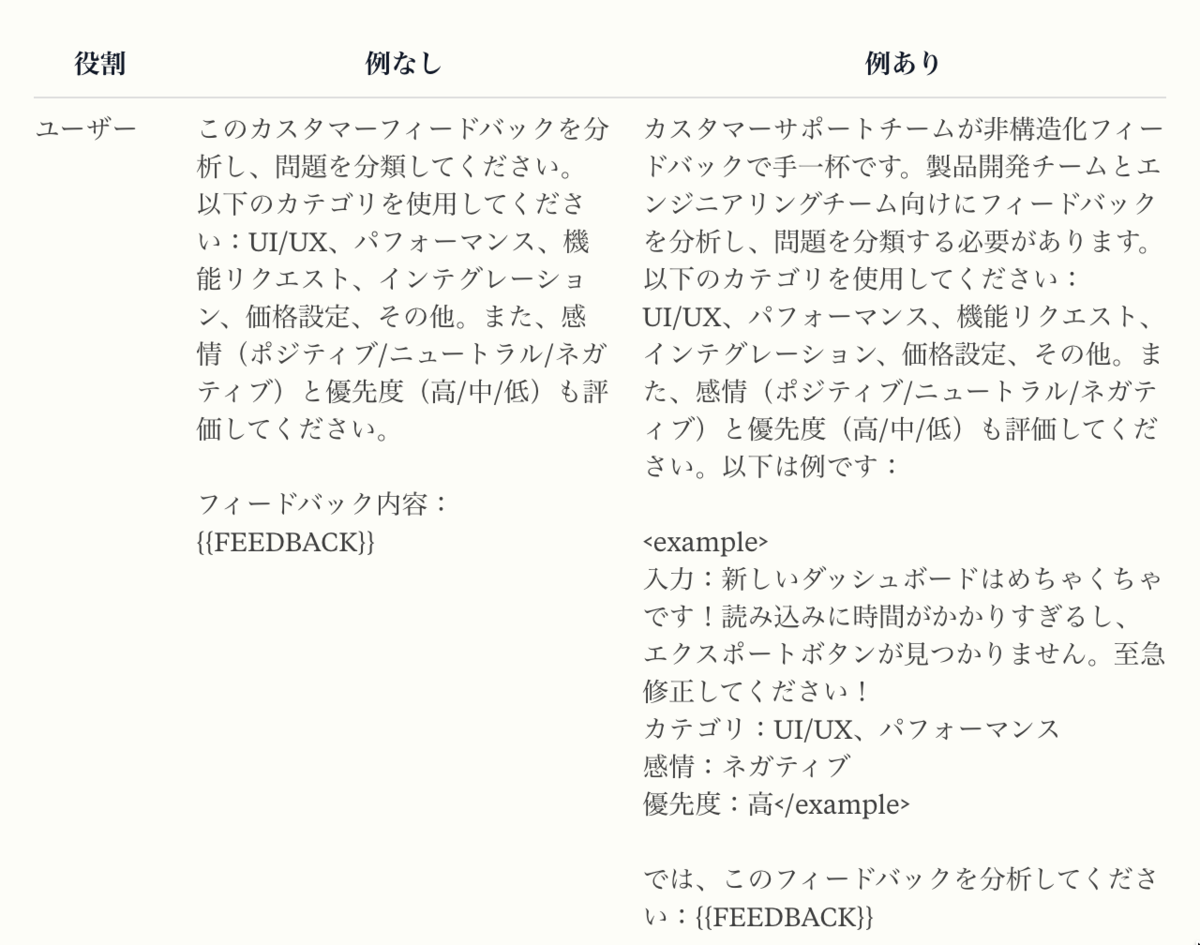 引用元リンク:https://docs.anthropic.com/ja/docs/build-with-claude/prompt-engineering/multishot-prompting