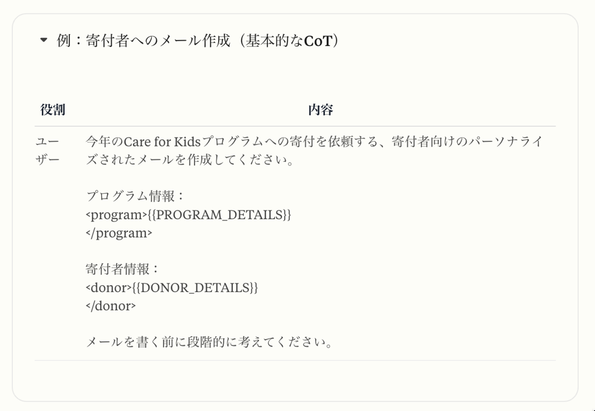 引用元リンク:https://docs.anthropic.com/ja/docs/build-with-claude/prompt-engineering/chain-of-thought