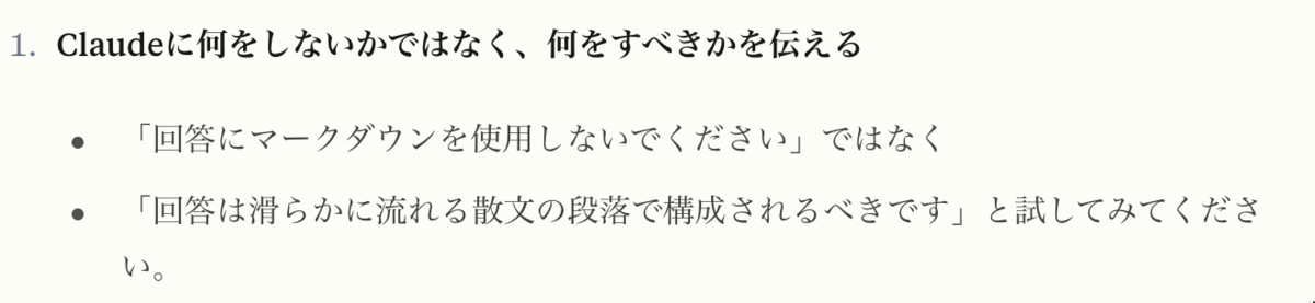 ちなみに効果的なプロンプトとして「何をしないかではなく、何をすべきかを伝える」というのもありました。