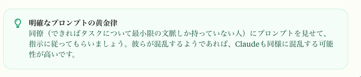 引用元リンク:https://docs.anthropic.com/ja/docs/build-with-claude/prompt-engineering/be-clear-and-direct
